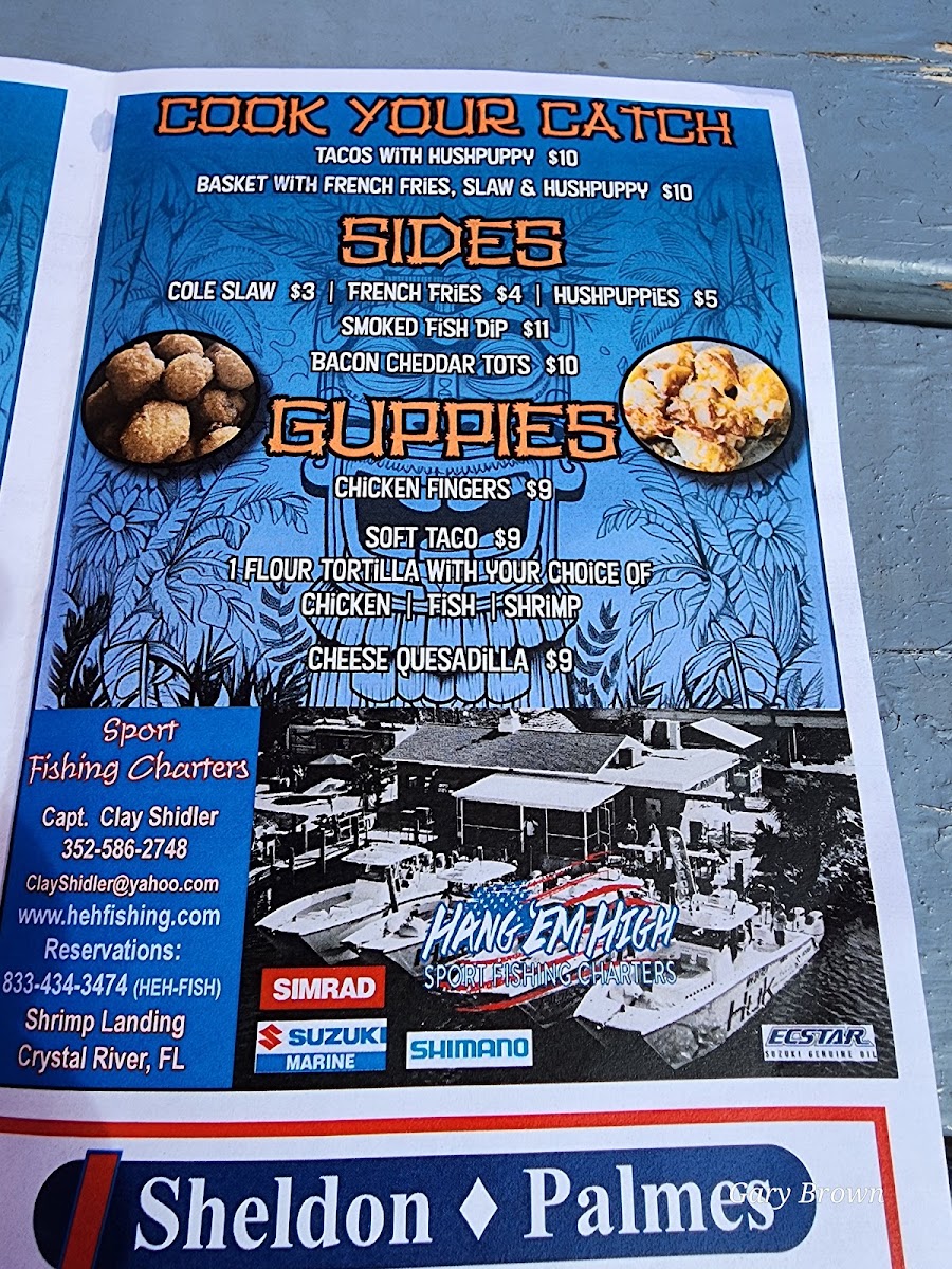 “ We loved sitting outside watching the shrimping boats on the water; meeting the owner; taking in the picturesque Florida setting; and eating the best fresh seafood. We ordered the Friday fish and chips special and a pound of shrimp. It was more than we could eat. Generous portions, great flavours, friendly service. Highly recommended. We couldn’t resist taking pictures of the egret and pelicans. It was a perfect finish to our visit to see the manatees at Silver Spring park. ”